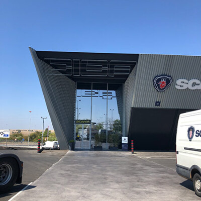 Proyecto de fachadas ventiladas en Bosh Service Diesel Gallardo (Sevilla)