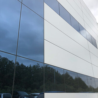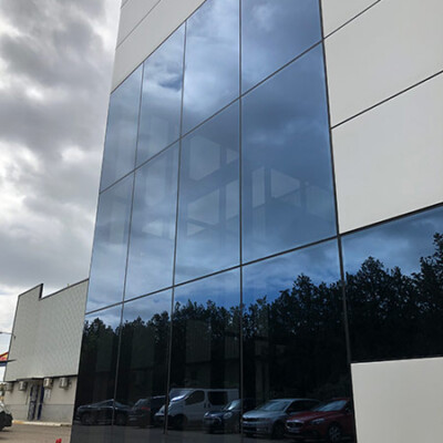 Suministro y montaje de muro cortina, doble acristalamiento y panel sandwich arquitectónico